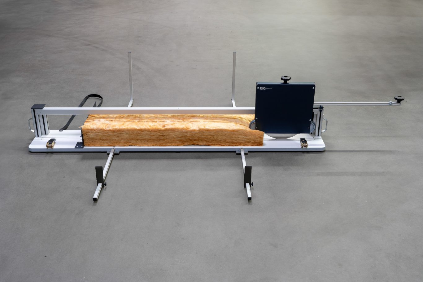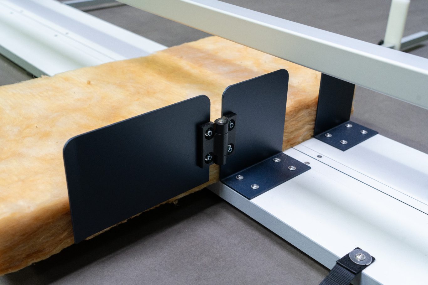 Mit seiner stabilen Grundplatte eignet sich der Dämmschneider perfekt für die Montage auf Werkbänken oder Tischen. Hierbei ist lediglich eine Arbeitsfläche mit mindestens 600 mm Tiefe und 2000 mm Breite erforderlich. So können auch größere Dämmplatten mühelos bearbeitet werden.